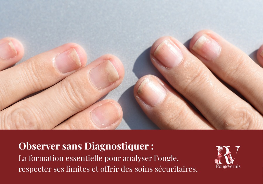 Apprenez à observer et analyser l’état des ongles et des mains sans diagnostiquer. Cette formation de 4 h vous guide pour repérer les signes visibles d’affections, adapter vos soins de confort et d’hygiène, accompagner vos clientes avec assurance et pratiquer en toute sécurité, tout en respectant vos limites professionnelles.